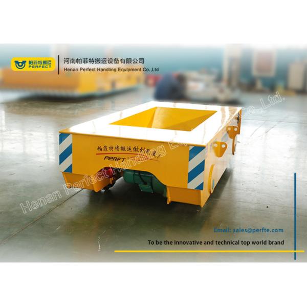 This type of Trailing Cable Powered Material Transfer Cart permit the 380V alternating current get from the electric control system directly and then drive the motor to make it start, stop, move forward and move backward. The cable lies in the middle of the two rails and the working voltage is safe 36V. Hydraulic lifting system can be mounted on the car to meet the demand for lifting.PLC also can be installed on the car to realize full automation operation. What's more, there is no limitation of running time and no insulated requirement for the rail erection. To avoid abrasion of cable,towline is alternative.It can be used in high temperature and explosion proof environment. It's usually used for short distance transportation.
